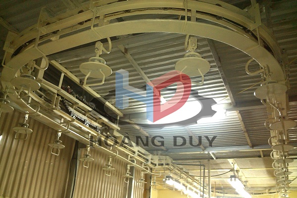 Băng tải xích treo sử dụng trong các nhà máy có chức năng vận chuyển sản phẩm chạy quanh nhà máy và các phân xưởng sản xuất. Chúng được sử dụng rộng rãi trong các nhà máy chế biến chè tươi, lắp ráp linh kiện, phun sơn tự động, quần áo...