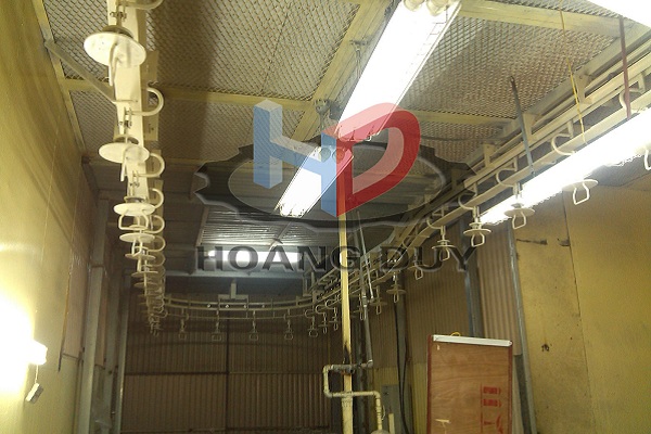 - Băng tải được treo trên không gian nên tiết kiệm diện tích sản xuất.