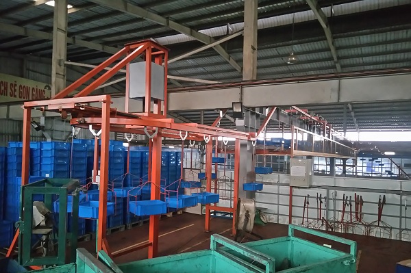 Bộ tăng xích có tác dụng căng xích trong quá trình băng tải chạy, đảm bảo cho băng tải xích treo chạy êm, ăn khớp đúng. Tùy vào từng dây chuyền ta lựa chọn bộ tăng xích thanh ren hoặc bộ tăng xích tải trọng treo tự động.
